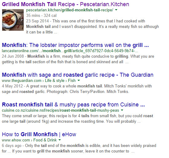 The term pescetarian is searched for around 40,500 times every month. This alone was an encouraging stat for me, because it doesn't even take into account all of the recipe-specific search terms that could be targeted (e.g. prawn linguine recipe).