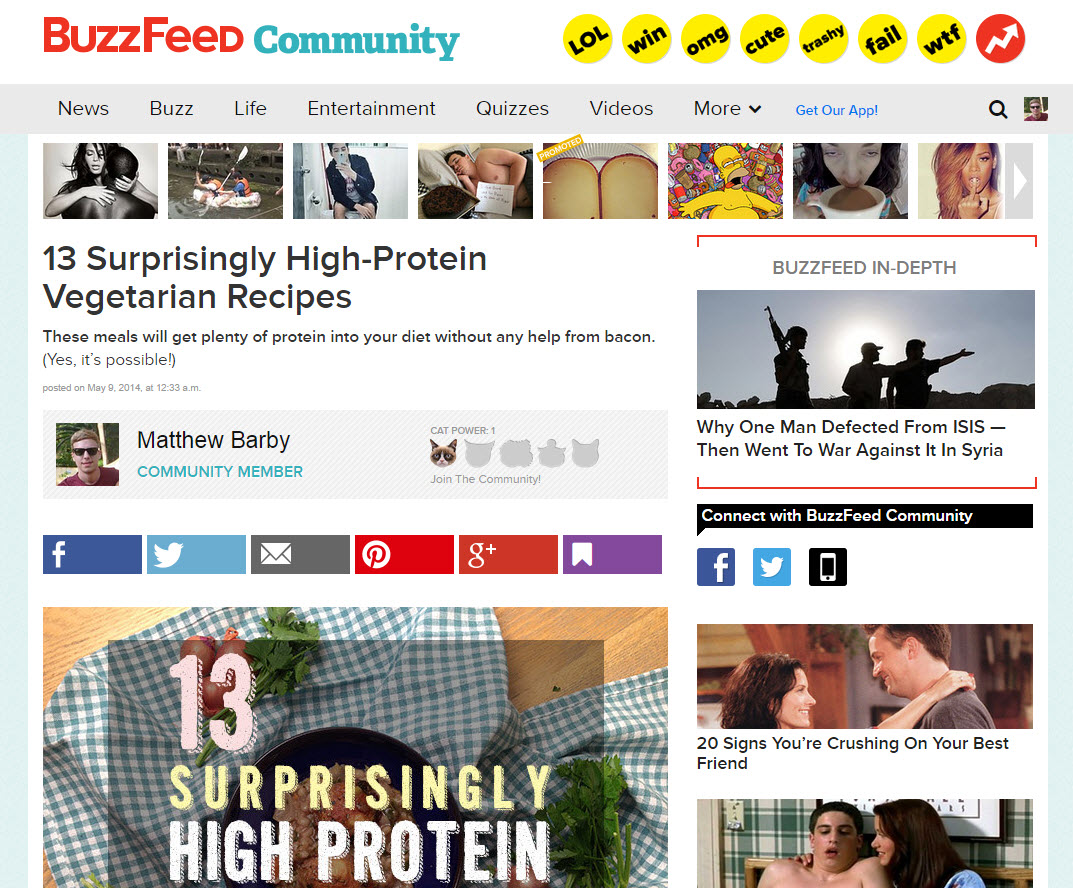 BuzzFeed has a community platform where anyone can make an account, log-in and publish a post. Now, you may already be seeing dollar signs right now, but you need to roll that tongue back in. Unless your post gets promoted for a community feature by the moderator team (who are notoriously strict with their submissions), your post is going nowhere. Oh, and you're not going to get any dofollow links of value because they're just coming from an orphan page (they're often nofollow if it isn't promoted for a feature anyway).