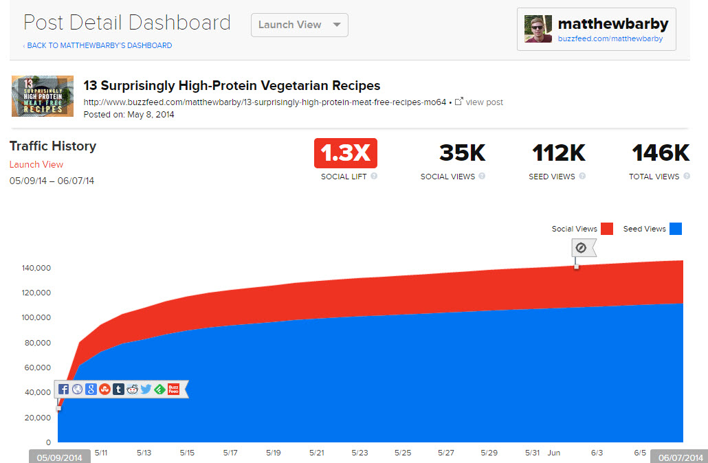 Here are the analytics for one of the posts that I had hit the front page with (BuzzFeed has its own analytics platform):