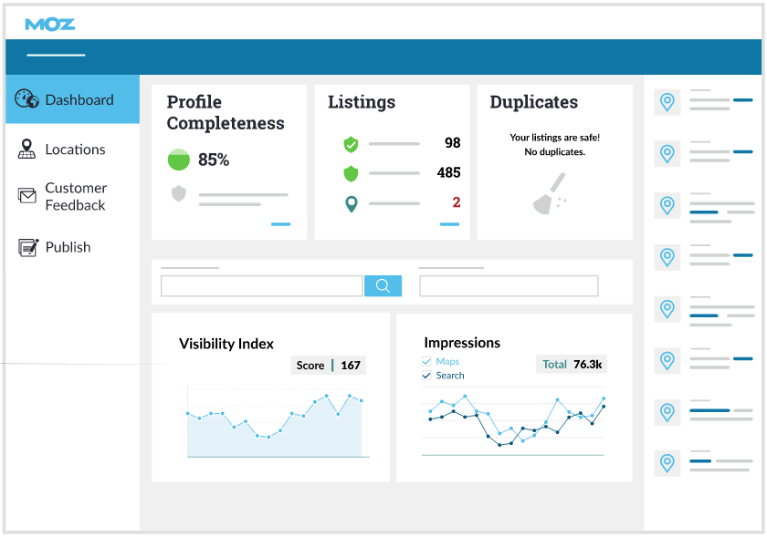 - Every Moz Local dashboard contains an activity feed that continuously streams the latest information, updates, and alerts for all of your listings