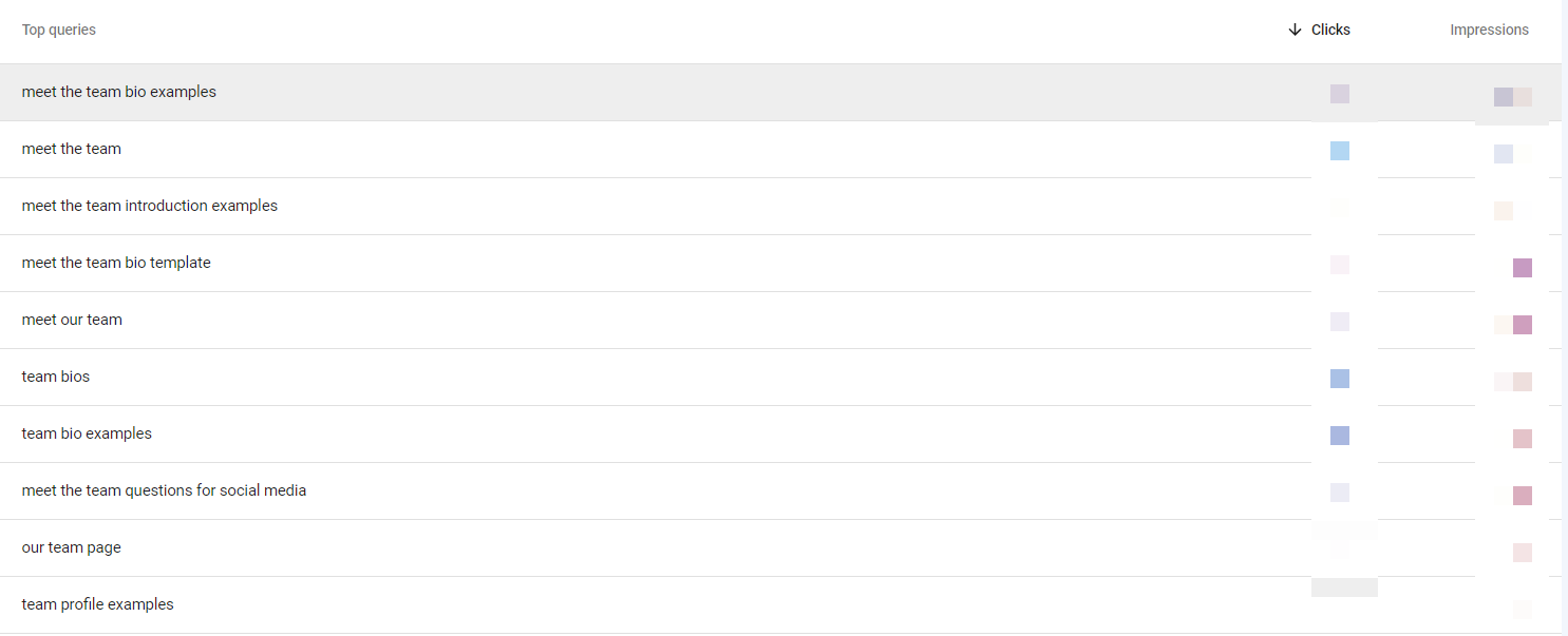 Here’s a good example of some content about “meet the team” pages. Because synonyms and close variants have been included, it ranks for similar terms like team bios, our team page, team profiles, and many more:
