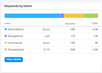 In contrast, for a service site that I work on, informational queries make up 76% of their total keyword rankings. These information pages help to make semantic connections by providing further context around the subjects a service provider specializes in. Without these supporting pages, they wouldn’t be able to display their depth of knowledge or expertise on a topic.