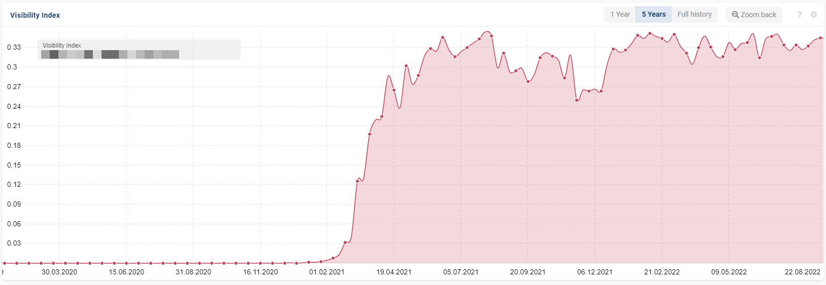 This new, key sales page was added to a client’s site in December 2020. It took hold quite quickly, so was further optimized in March 2021, and visibility increased massively from then on.
