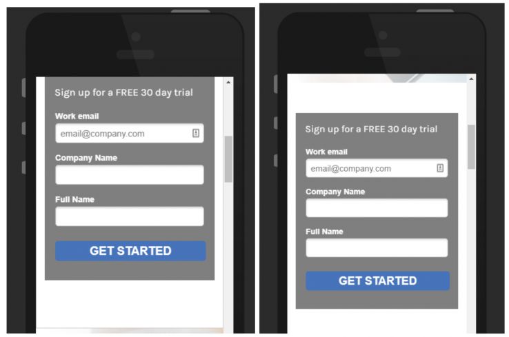 This will allow you to offer a full form for users to fill out, at different points on the page, without having to worry about it becoming wallpaper or whether you can marry up external conversions. Using only CSS will also mean that you don’t have to worry about users with JavaScript turned off (while the bonus points below rely on JavaScript, this will fall back gracefully if JavaScript is turned off).