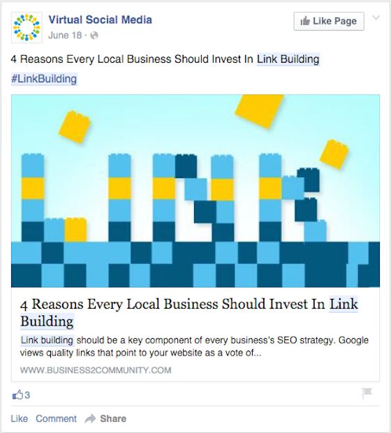 And notice where "link building" is highlighted in posts that appear in search results on Facebook when you search for that phrase: