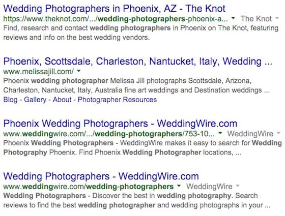 Wedding photographers, on the other hand, should be on The Knot and WeddingWire.