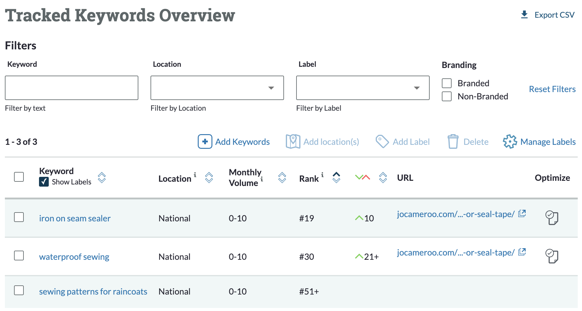 Tracking your rankings is crucial to understanding why you’re not performing as well as you expected. If you’re seeing a lot of down arrows, you need to investigate who is jumping ahead of you and why.