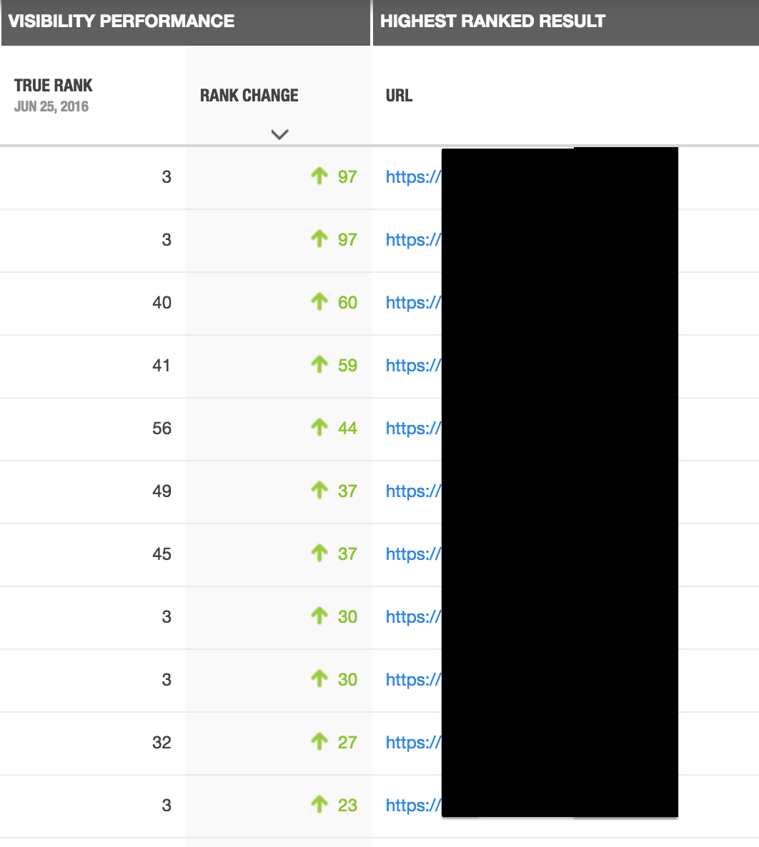 As I mentioned earlier in the article, the process outlined above has enabled us to not only get client sites indexed, but even to get those sites ranking on first page for various keywords. Here’s an example of the keyword progress we made for one client with an AngularJS site: