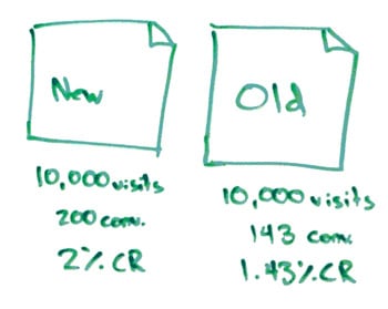 Then, of course, with every type of conversion rate optimization test and landing page optimization, we want to actually try some variations. So we're going to do a split test of the new page against the old one, and if we see there's stronger conversion rate, we know we've had success.