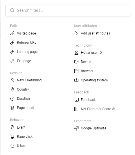 Once I established which page elements get the most attention, I then isolated the users’ behaviors by using Hotjar’s filters to watch session recordings that contain the chosen events.