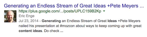 That means that even if Google decided Authorship snippets were too much for regular search, seeing a name and a face are still powerful and useful signals if that name and face are familiar to the searcher.