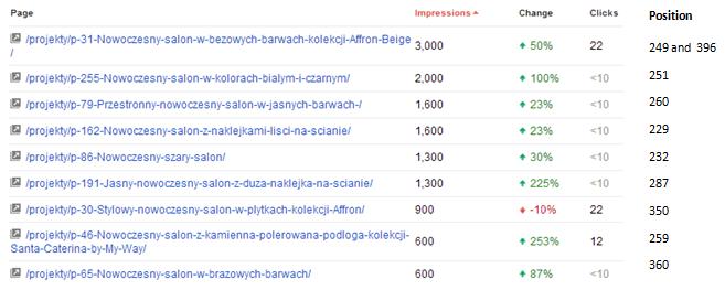 To explain this phenomenon I will use an example. Website Inspireme.pl occurs 27,000 times for the phrase “nowoczesny salon” (Eng. modern living room). However, when you click on a phrase we see, that the number of subpages, that appear for this query is quite high.