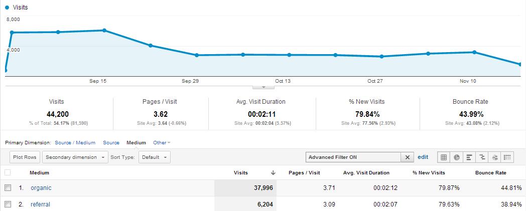 Comparison of visits generated by google/organic and google/referal (first) and visits from google/image (second) after modification at the end of September on www.inspireme.pl site: