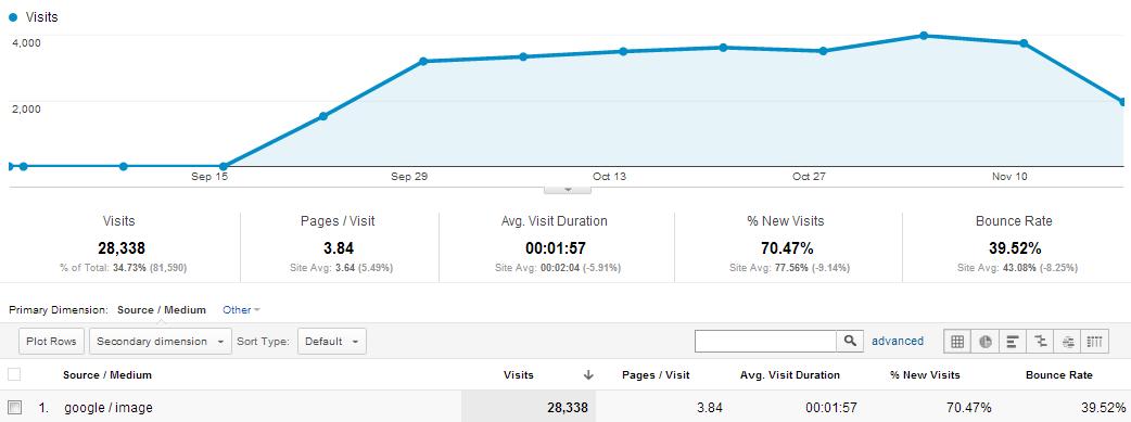 Having introduced this change, Google Analytics will report the graphics traffic as a source: google and medium: image.