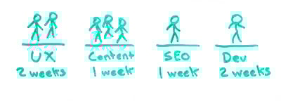 You never want to present estimates that haven't been validated by the right team. I might, for example, say there's a big SEO change that we want to make here at Moz. I might need some help from UX folks, some help from content, some help from the SEOs themselves, and one dev for two weeks. All of these different things I want to represent those completely in the planning process.