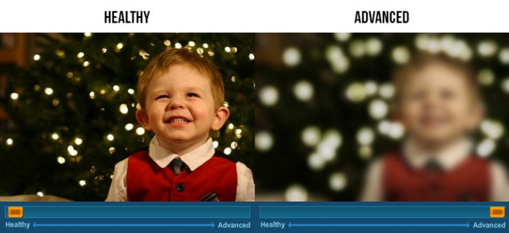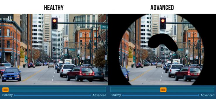 Finally and probably the one that could most easily be applied to the online world is a pair of empathy glasses. These can come in various types depending on the condition you want to simulate. If you want to get an idea of how various eye conditions can affect vision, look at the side-by-side comparison of healthy eyes to advanced stages of cataracts and glaucoma below. You can see the tools here: Cataract simulator, Glaucoma simulator.