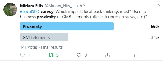I was so intrigued by our survey’s results that I ran a very quick Twitter poll to take another snapshot of current sentiment about proximity. Most of my followers are interested in or involved with local SEO, so I was eager to see the outcome of this: