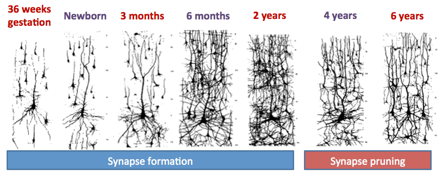Synaptic pruning = (Use it or lose it)