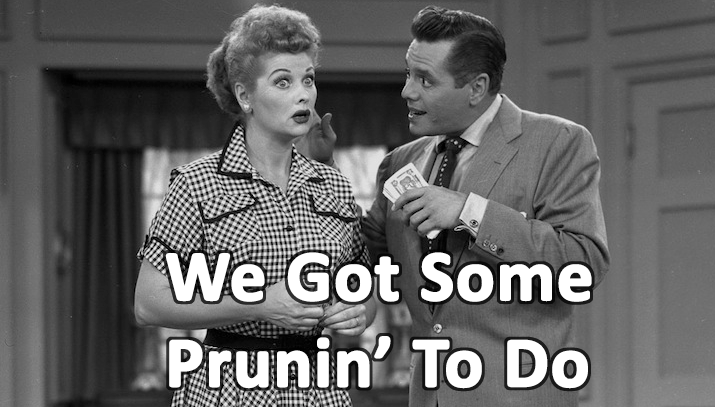 Not unlike removing deadweight content from your site, pruning trees involves the careful selection of limbs to remove for the purpose of improving air circulation (crawling) and consolidating light and nutrients (page-level metrics) into the most important branches (pages).