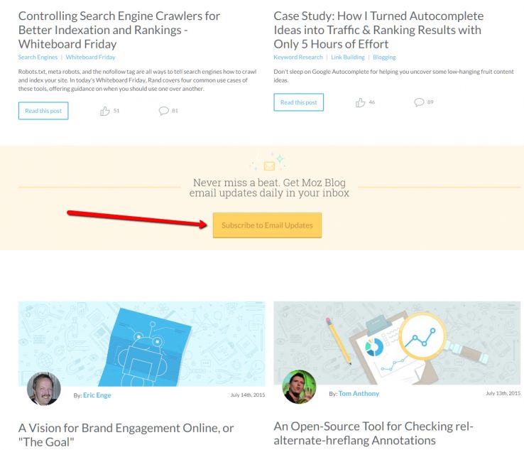 We closely monitored our blog traffic and engagement metrics, as well as subscriptions to our emailed blog newsletter. HubSpot ran their experiment first, allowing Moz to learn a few lessons from their experience before starting our own.