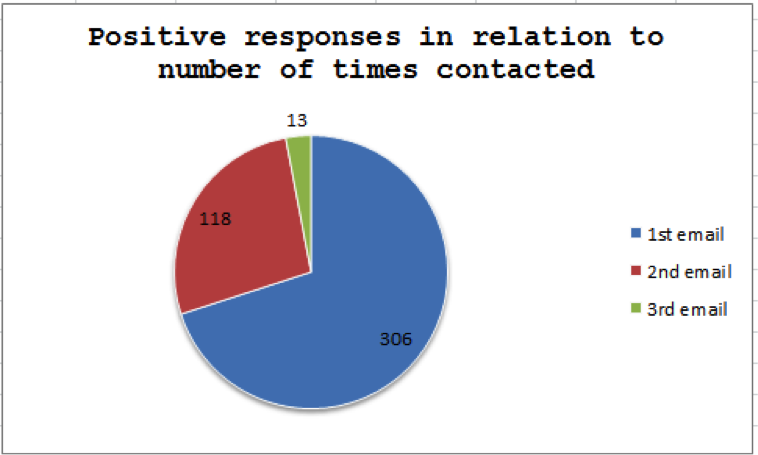 You will note from the chart below that around 30% of positive responses received agreed on the second or third email.