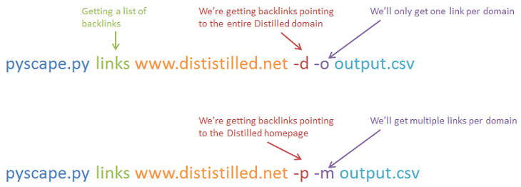 - -o (one): will return one URL per linking domain in links mode