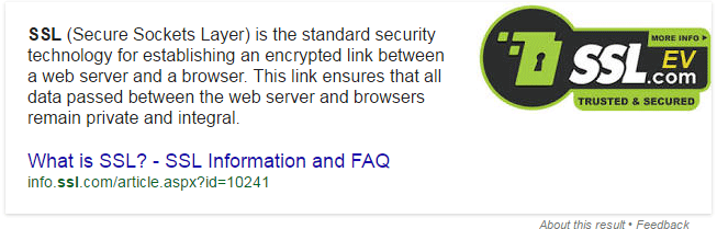 If you somehow haven't encountered a Featured Snippet searching Google over the past two years, here's an example (from a search for "ssl"):