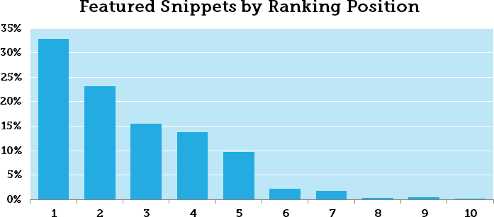 Just about 1/3 of Featured Snippets are pulled from the #1 position, with the bulk of the remaining coming from positions #2–#5. There are opportunties across all of page one, in theory, but searches where you rank in the top five are going to be your best targets. The team at STAT produced an in-depth white paper on Featured Snippets across a very large data set that showed a similar pattern, with about 30% of Featured Snippet URLs ranking in the #1 organic position.