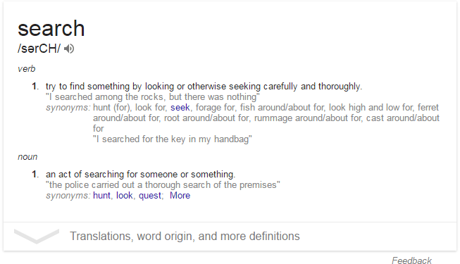 Keep in mind that common words will produce a dictionary entry. For example, here's a Knowledge Card for "What is search?":