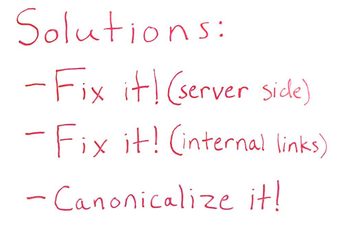 Then you'll do some education with everybody who touches your website saying, "Hey, when you link internally, make sure you're using the absolute URL and make sure it's in our preferred format," because that's really going to give you the most bang for your buck per internal link. So do some education. Fix your internal links.