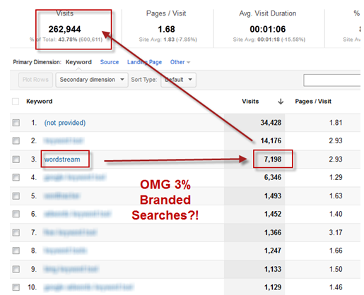 I'm sure we've all seen our share of clueless clients, where 95% of the organic search traffic is branded search. I wouldn't want to see all branded search; it means your SEO sucks if you're only appearing in front of people who are already looking for your business by name.