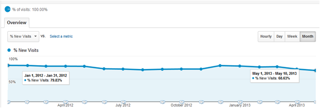 Earlier, I mentioned that last January, we had a 20% returning visit rate. Today, it's more like a 33% of our visitors are repeat visitors. That's a massive over 50% improvement. We love to see the steady increase in repeat visitors (decrease in new visitors) over time.