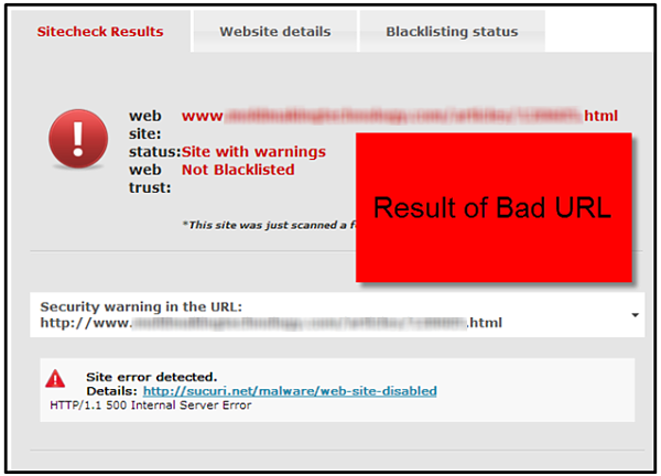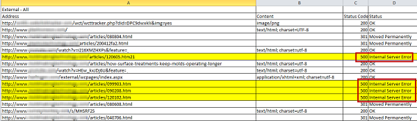 Take each URL and put it into a malware detector. This can take some time if you’ve got a lot of external links. Therefore, I recommend starting with any URLs that have error codes, like those seen below.