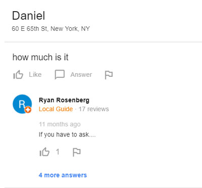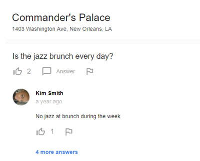 Takeaway: As I mentioned in a previous post, Greg Gifford found that 40 percent of his clients’ Google Questions were leads. To leave those leads up to the vagaries of the public, including a variety of wags and jokesters, is to leave money on the table. If a potential guest is asking about dietary restrictions, dress codes, gift cards, average prices, parking availability, or ADA compliance, can your restaurant clients really afford to allow a public “maybe” to be the only answer given?