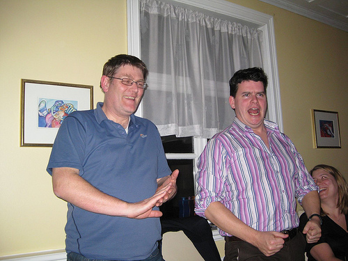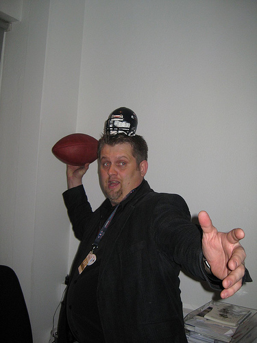 Kristjan attempts an American Football toss at a party thrown that evening at the Nordic eMarketing offices (thankfully, he didn't break any of the large monitors in the room)