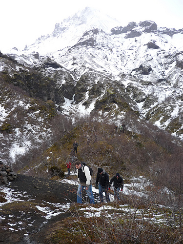 In the volcanic valley, Þórsmörk, nestled between two Icelandic glaciers, we took an hour hike to the top of a tall overlook