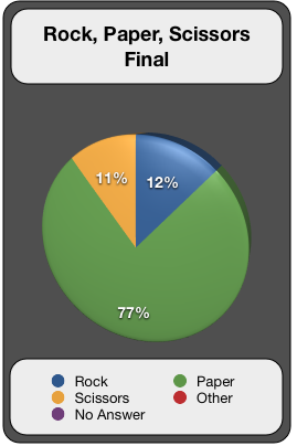 UPDATE: I clarified below that it is the winners of the 4 rounds that won, not just people who chose the winning weapon.