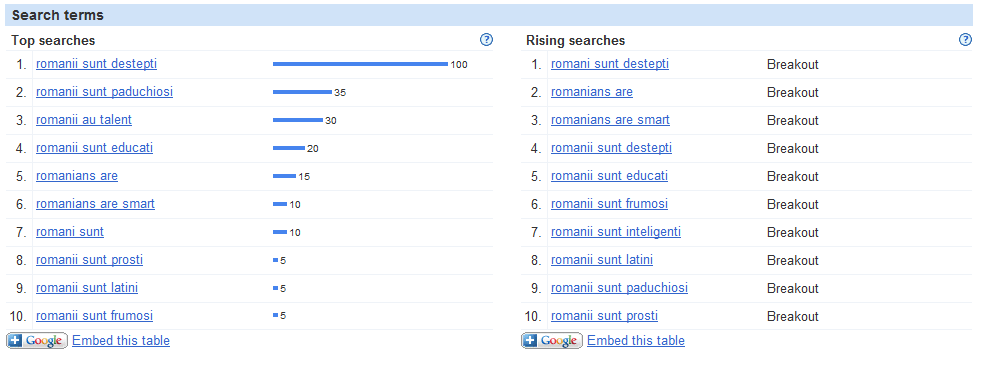 - 163,779 searches for romanii sunt destepti (Romanian)