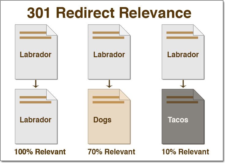 For example, if you have a page about “labrador,” then redirecting to a page about “dogs” makes sense, but redirecting to a page about “tacos” does not.