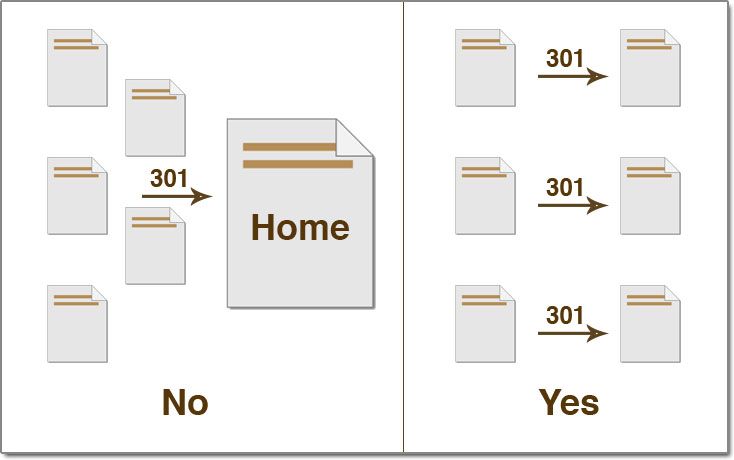 A perfect 301 redirect works as a simple “change of address” for your content. Ideally, this means everything about the page except the URL stays the same including content, title tag, images, and layout.