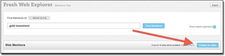 When you run a query in Fresh Web Explorer, you have the opportunity to create an alert based on that search.