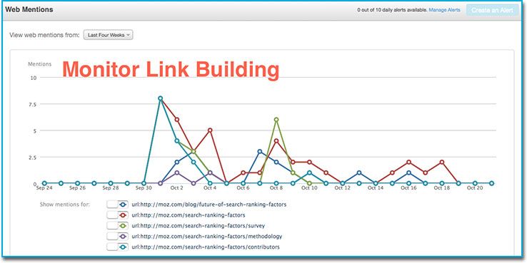 In the second example, as seen in the graph below, I can monitor our link-building efforts.