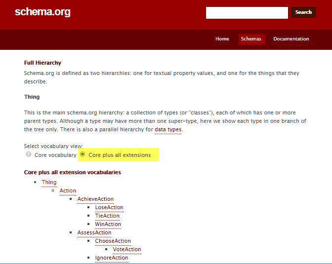 Tip: Click “Core plus all extensions” to see extended Schema.org’s libraries and what's in the pipeline.