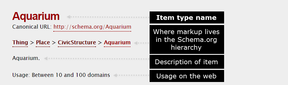 Tip: Every Schema.org item type can be found by typing its name after Schema.org, i.e. http://schema.org/Aquarium (note that case is important).