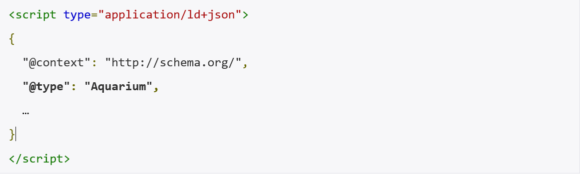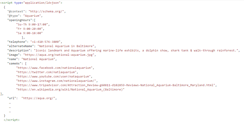 As an example, I’m going to walk through the Aquarium item type Schema.org markup. For illustrative purposes, I’m going to stick with JSON-LD moving forward; however, if there are any microdata questions, please reach out in the comments.