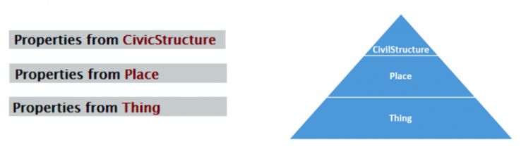 One of the things you may have noticed: under “Property” it says “Properties from CivicStructure.” We know that an Aquarium is a child of CivicStructure, as it is listed above. If we scan the page, we see the following “Properties from…”: