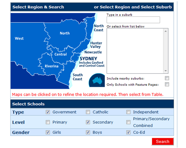 From the background information, I decided to use high/senior schools as a focus for my secondary data research and to begin my information gathering in Google Maps and then move on to other online information directories.