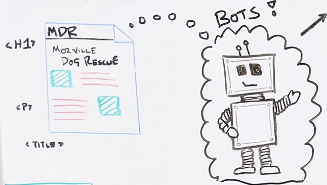 So for me, as a technical SEO, maybe I'm thinking about things like my H1 tag or my paragraph tag or my title tag, for this example page here for Mozville Dog Rescue.