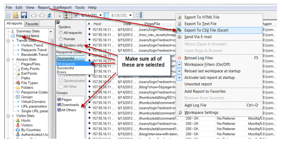 You probably now have a compressed log file like ‘mylogfile.gz’ and it’s time to start digging in. There are myriad software products, free and paid, to analyze and/or parse log files. My main criteria for picking one includes: the ability to view the raw data, the ability to filter prior to parsing, and the ability to export to CSV. I landed on Web Log Explorer (http://www.exacttrend.com/WebLogExplorer/) and it has worked for me for several years. I will use it along with Excel for this demonstration. I’ve used AWstats for basic analysis, but found that it does not offer the level of control and flexibility that I need. I’m sure there are several more out there that will get the job done.