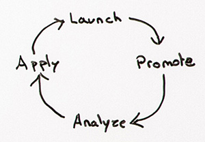 This is not something where you follow this process and you have instant results with your first post. That's not the case. No one has that in blogging. That's just not how it works. You're going to launch, promote, analyze, apply the information that you learn, and launch again. This process is going to happen over and over, and the more you learn and apply, the better you're going to get at this system.